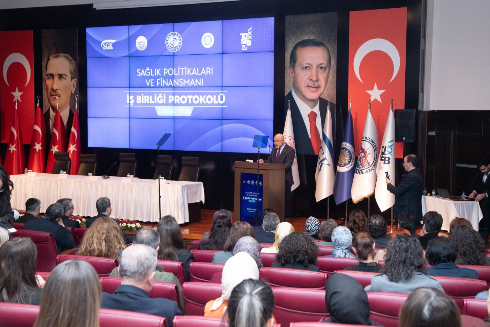 Işıkhan, bir taraftan ekonomiyi büyütüp, kamu kurumlarını geliştirirken diğer taraftan da gelecek nesillere daha sağlıklı bir ülke bırakmak için her geçen gün yeni projeler ve hedefler ürettiklerine vurgu yaparak, “Kamusal alanda sağlıkta tek geri ödeme kurumu olarak hedefimiz; sadece sağlık finansmanını sağlamak değil, aynı zamanda sigortalılarımızın tüm beklentilerini karşılayacak kaliteli, sürdürülebilir, güvenli ve kontrol edilebilir bir sağlık sistemi inşa etmektir. Bu amaçla geri ödemede sağlık hizmetlerine her yıl artan tutarlarda harcama yapıyoruz. Genel Sağlık Sigortası uygulamaları ve sağlık politikalarına ilişkin olarak çalışmalarımızın bilimsel ve teknik danışmanlık desteği ile yürütülmesine devam ediyoruz. Bu hususta özellikle üniversitelerimizi eğitimin yanı sıra bilgi üreten ve kamu politikalarına yön veren stratejik yapılar olarak görüyoruz. Sağlık gibi dinamik ve sürekli gelişen bir alanda üniversitelerimizin bilimsel yaklaşımı ve akademik birikimiyle yürütülen iş birliklerini son derece kıymetli buluyorum” ifadelerini kullandı.